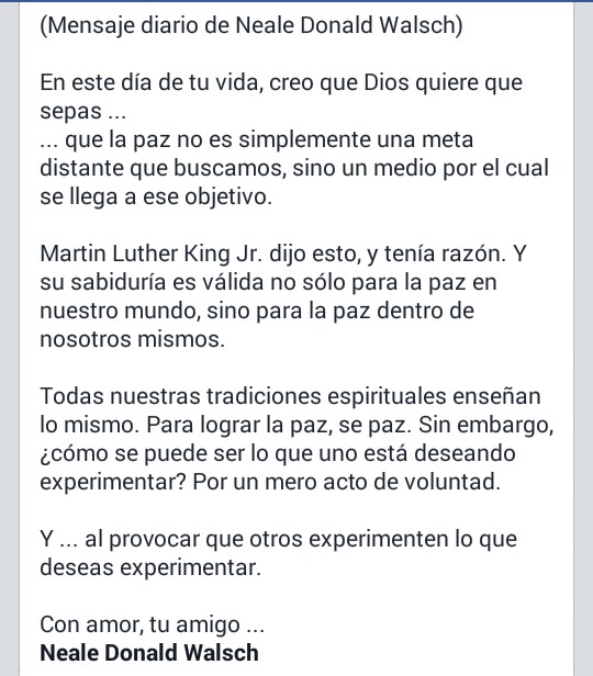 La paz, es un proceso que cada ser del planeta tiene que tomar como suyo, como un ejercicio personal y permanente, de estar alerta y dispuesto a ahondar en sus propias entrañas para resolver los nudos personales, familiares, laborales, comunitarios, ciudadanos que dificultan y obstruyen una estadía amable sobre esta tierra. La paz es una realidad que inicia en cada uno de nosotros, y es más que un slogan o un panfleto, es una obligación, una responsabilidad en la que nadie está incauto.